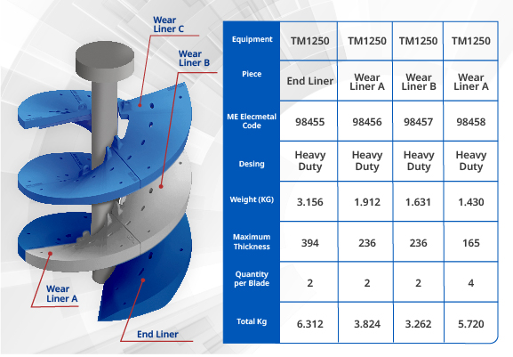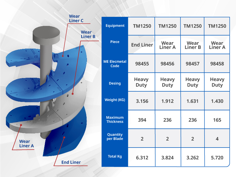 The proposal considers a Heavy Duty design, which incorporates steel redistribution reinforcing the linings with higher wear, as shown in the image.